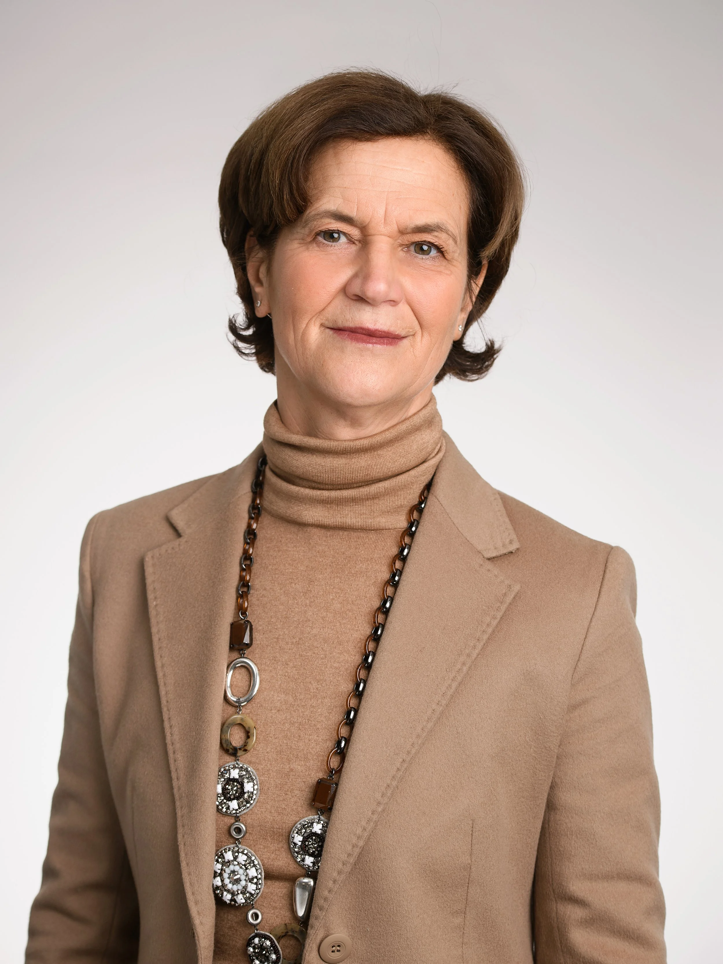 She works in English, French and conversational German.